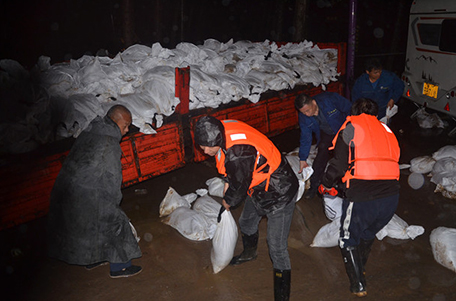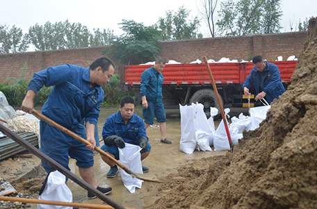 公司裝運(yùn)沙袋 助力防洪工作