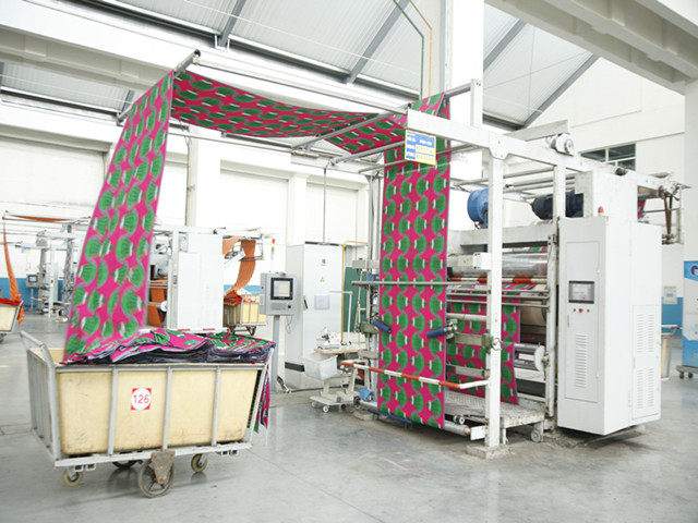 華紡股份有限公司花布公司是公司印染主導(dǎo)產(chǎn)業(yè)板塊的重要組成部分,集印花面料的設(shè)計(jì)、印制、后整及銷售于一體,擁有進(jìn)口齊瑪20套色圓網(wǎng)印花機(jī),由高效配套的水洗機(jī)、退漿機(jī)、雙面印花機(jī)、絲光機(jī)、蒸化機(jī)、拉幅機(jī)等裝備組成13條功能先進(jìn)的印花生產(chǎn)線,輔以2條先進(jìn)的自動(dòng)調(diào)漿系統(tǒng);采用CAD滑行設(shè)計(jì)處理系統(tǒng)和先進(jìn)的蘭光制網(wǎng)機(jī)、噴蠟制網(wǎng)機(jī)等,可根據(jù)客戶及市場(chǎng)需求設(shè)計(jì)花型,并自主研發(fā)引領(lǐng)時(shí)尚潮流的新花型。年產(chǎn)能力12000萬米,產(chǎn)品綜合出口率達(dá)80%以上,其中純棉真蠟印花布、純棉仿蠟印花布等100%外銷出口。花布公司生產(chǎn)工藝先進(jìn)、產(chǎn)品質(zhì)量穩(wěn)定,技術(shù)含量高、市場(chǎng)份額大,長(zhǎng)期暢銷非洲等數(shù)十個(gè)國(guó)家和地區(qū),其產(chǎn)品在非洲市場(chǎng)占有重要位置。